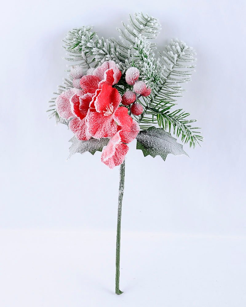 Christmas ItemArtificial Flower 20*37CM SINGLE PINE PICKY WITH HYDRANGEA WITH FLOCKY GS-53319003-R1