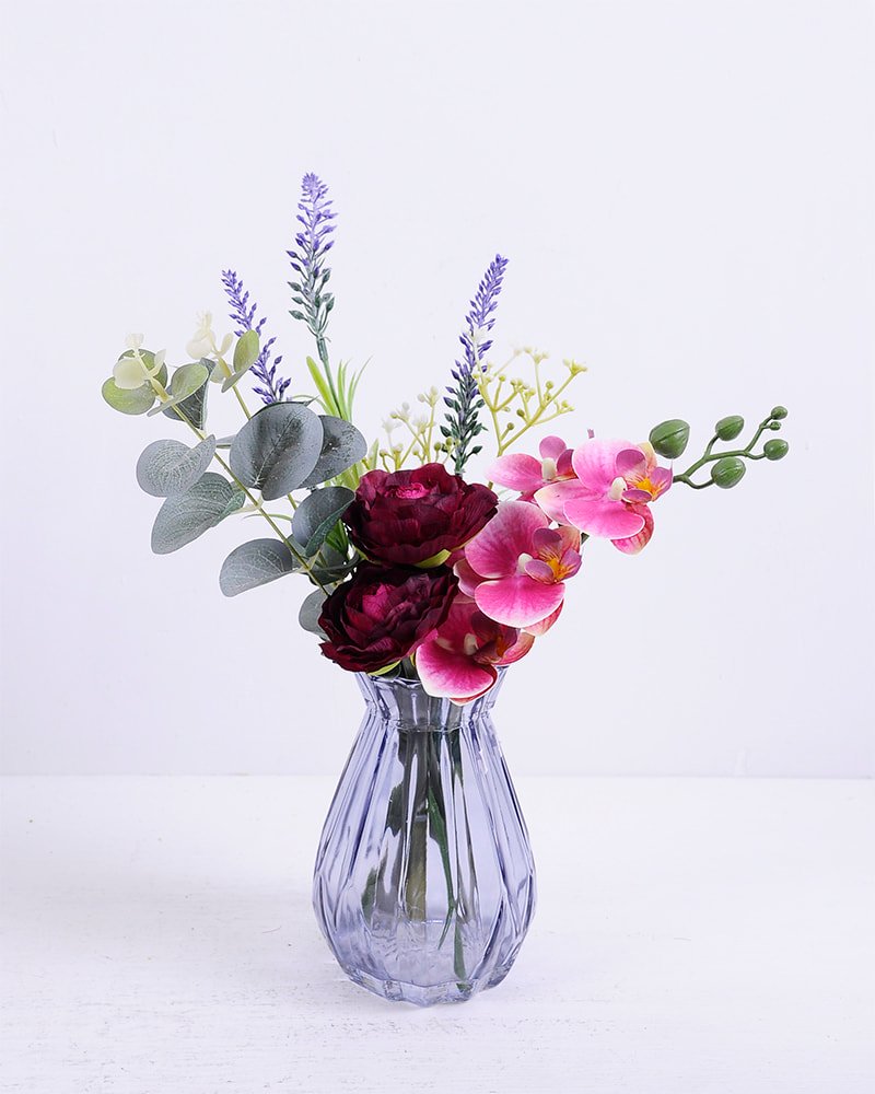 | Name: | 26*21*32CM Camilla&Orchid&Lavender in glass pot with fake water |