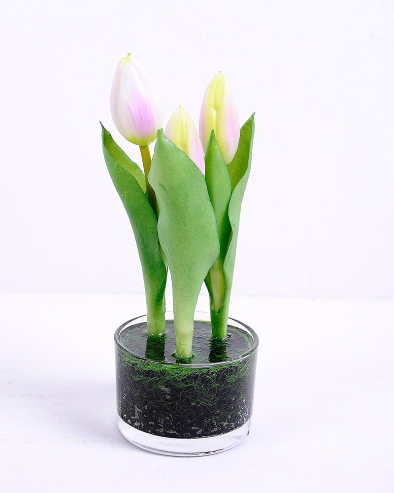 Artificial Flower 7*20CM Tulip*3 in glass pot GS-24520001-Z2