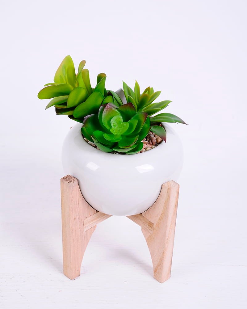 | Name: | Artificial succulent 13*18cm succulent plants in Ceramic pot whit wooden support GS-51720162 |